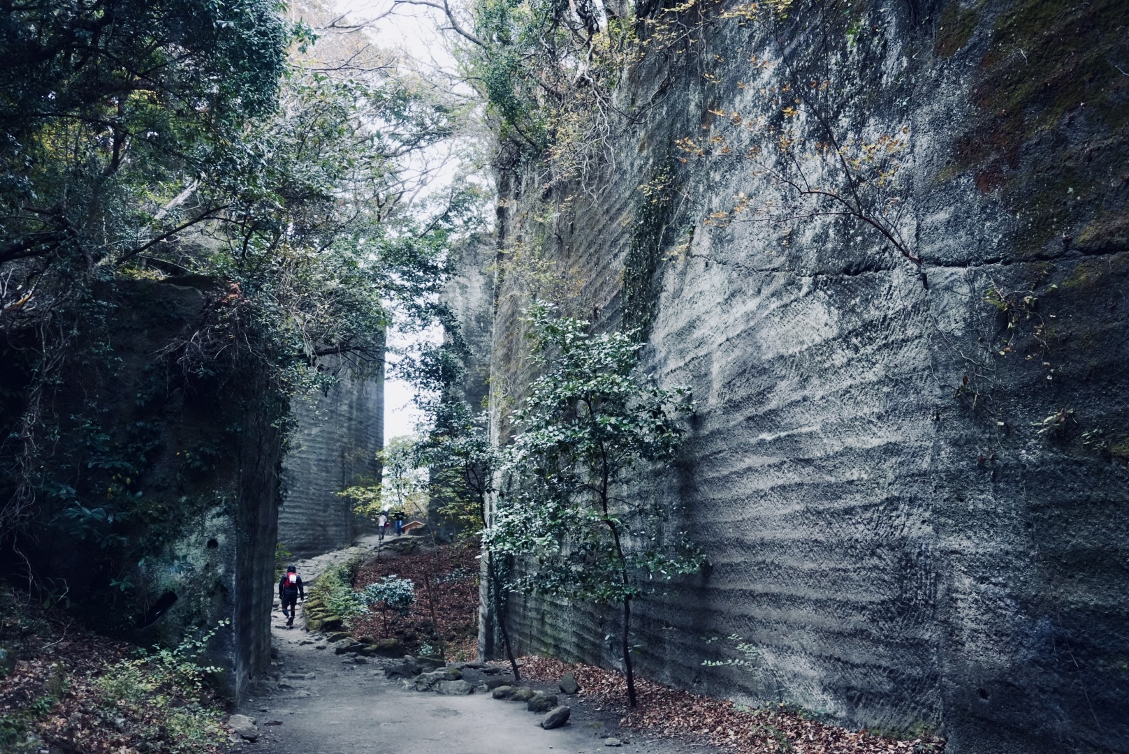 鋸山は、かつて「房州石」と呼ばれる採石が盛んで、その当時の採石の跡を至る所で目にすることができます。 山の大部分は「日本寺」というお寺の境内となっており、日本一の大きさを誇る大仏や断崖絶壁から景色を眺める「地獄のぞき」など、気になるスポットが沢山!