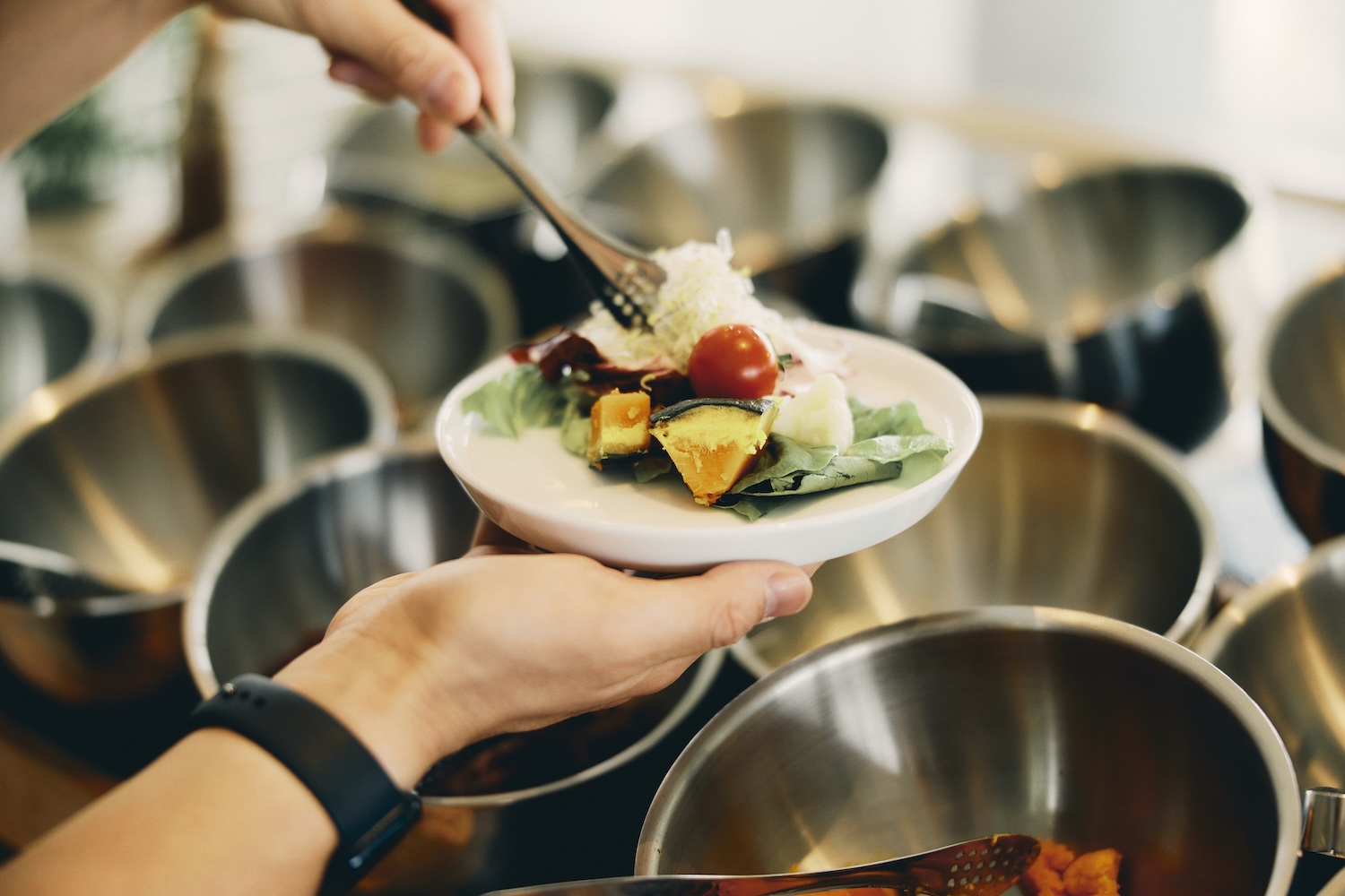 BPCでは、宿泊ゲスト向けサービスの一つとして、朝食にサラダビュッフェをご用意しています。約20種類のデリや野菜の中から、その日の気分やコンディションに合わせて一皿を組み立てられます。日替わりのコールドプレスジュースとともに、軽やかな1日のスタートをどうぞ。