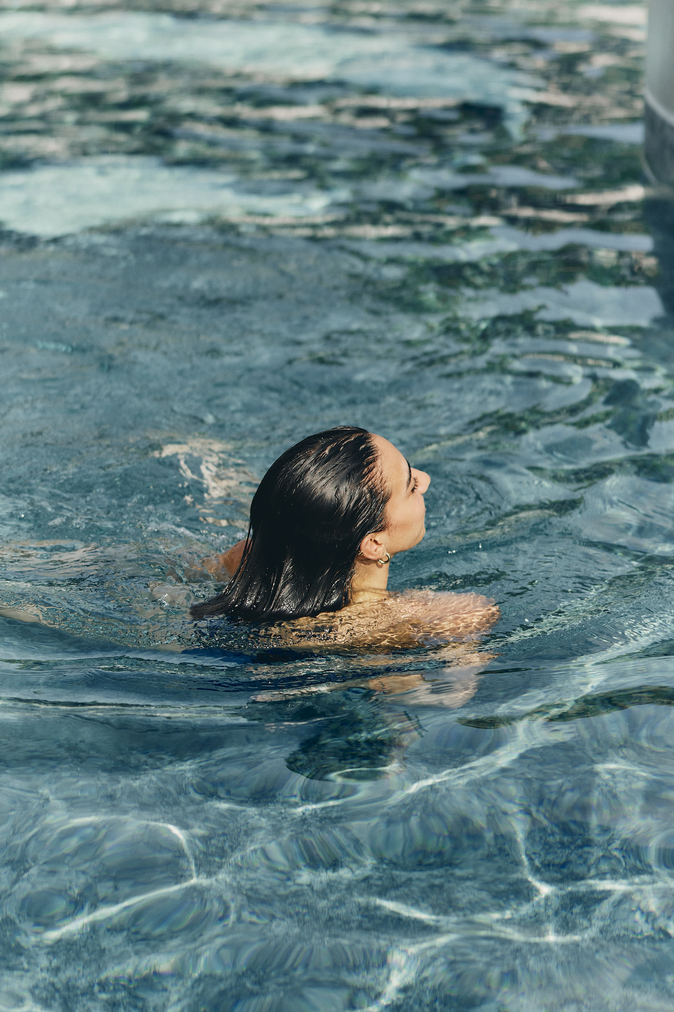 その日の気温に合わせて最高40℃まで水温が調整されたHOT POOLでリラックス。